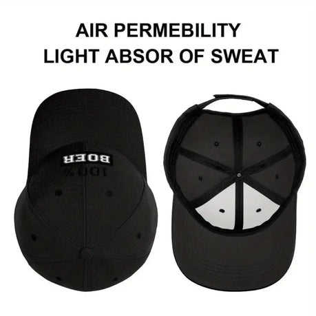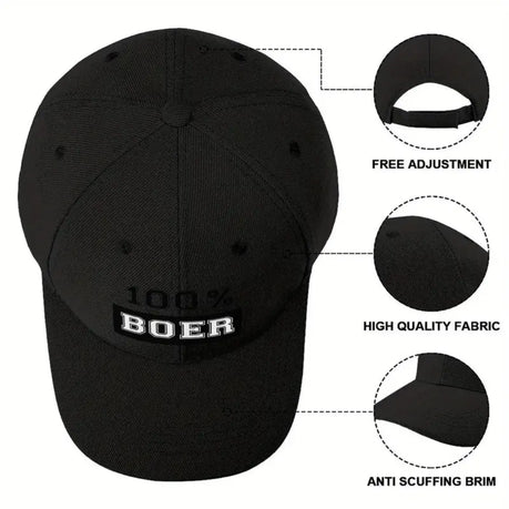 100% BOER Baseball Cap - Adjustable, Breathable Polyester Hat with "100% BOER" Embroidery - Perfect for Hiking, Outdoor Activities & Casual Wear, Outdoor Headwear | Stylish Cap Design | Polyester Cap