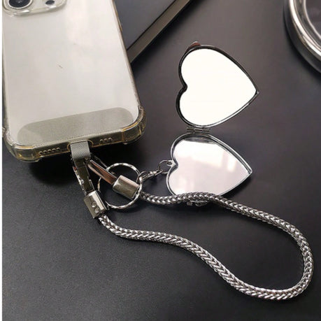 Chic Meets Symbolic: Featuring a vintage-inspired metallic skeleton key and a delicate heart charm mirror pendant, this phone chain is more than an accessory - it's a statement of style, love, and subtle mystery.