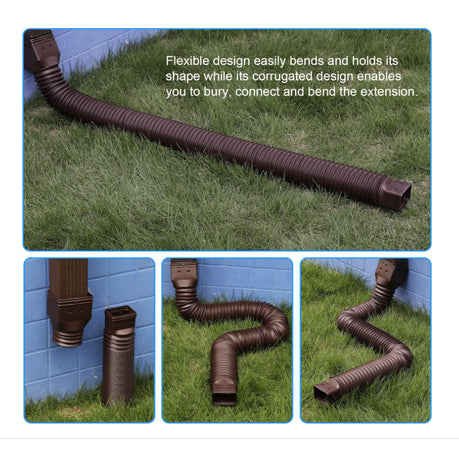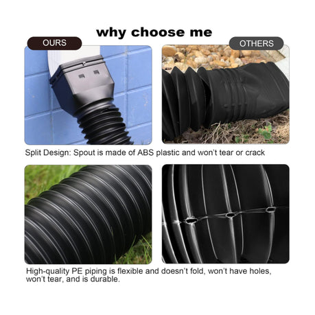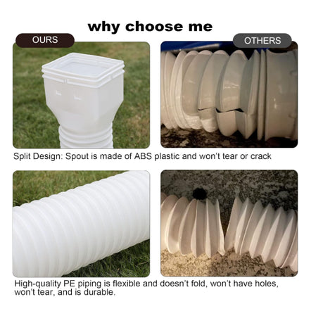 This downspout extender is made of PE material, we thicken them to make it more harder and sturdier than others. We've done thousands of load-bearing tests, and it can withstand at least 10 pounds without deformation. It is suitable for the complex environment outside your house. You can even bury it in the ground