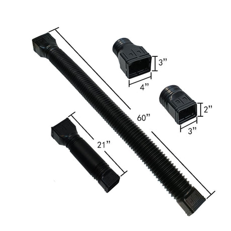 Each downspout drain extension comes with 2 different sizes of "adapters" to be suitable for 2 X 3 inches,3 x 3 inches, 3 x 4 inches and 3.5 x 4 inches downspout. Its split design allows you to use them more flexibility in different scenes
