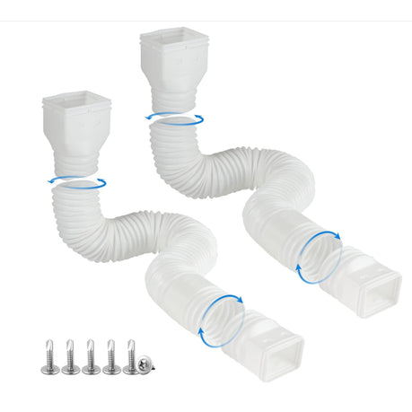2 x Rain drain pipes, 4x Adapters, 8 x Screws (The screws will help you to hold the extender on downspouts to prevent the extender from being washed away by rain).