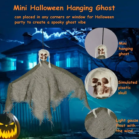 Add a chilling charm to your haunted setup with this set of 3 mini flying ghost decorations-perfect for turning your home, yard, or garden into a ghostly gathering spot! Measuring 37×30 cm each, these lightweight spooks are just the right size to flutter eerily in the breeze, whether you're going for cute-and-creepy or full-on haunted house vibes.