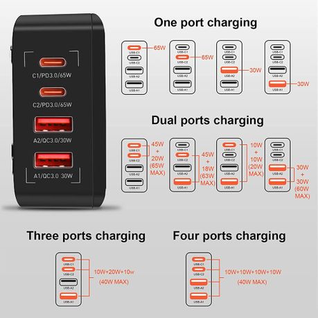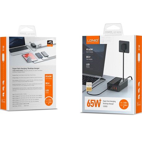 - 1× Fast Charging Hub Adapter 65Watt with 2 USB+2 Type C Port-(A4808Q)-LDNIO