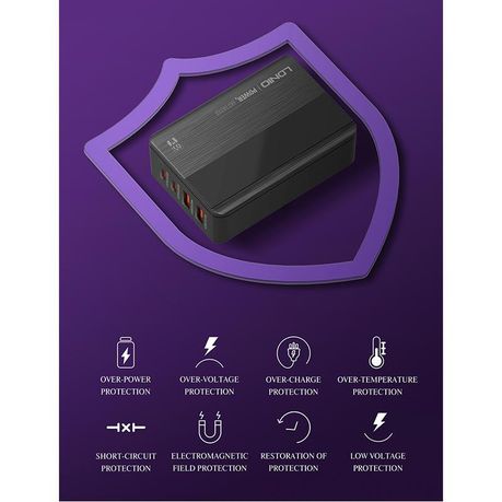 Fast Charging and Intelligent Multi-Device Power Distribution by LDNIO 65Watt With 2 USB+2 Type C Port-A4808Q
