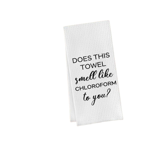 1pc 45.72x66.04 cm Funny Kitchen & Bathroom Towels - "Does This Towel Smell Like Chloroform to You?" Humorous Text, Ultra-Soft Polyester, Machine Washable Decorative Dish Towels for Modern Homes, Hand Towels for Bathroom, Playful Text Design, Easycare Fab